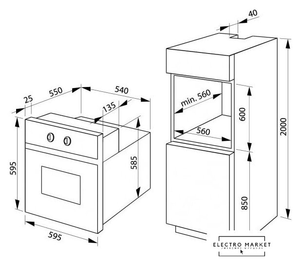 электрический с конвекцией, объем 78 л, утапливаемые переключатели, 9 режимов, очистка каталитическая, 2 стекла в дверце, направляющие проволочные + телескопические (1 уровень)