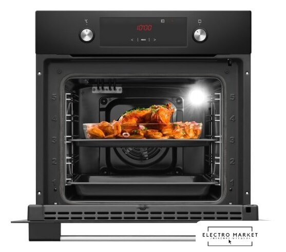 электрический с конвекцией, объем 70 л, 9 режимов, очистка ручная, проволочные направляющие, телескопические направляющие, энергопотребление A