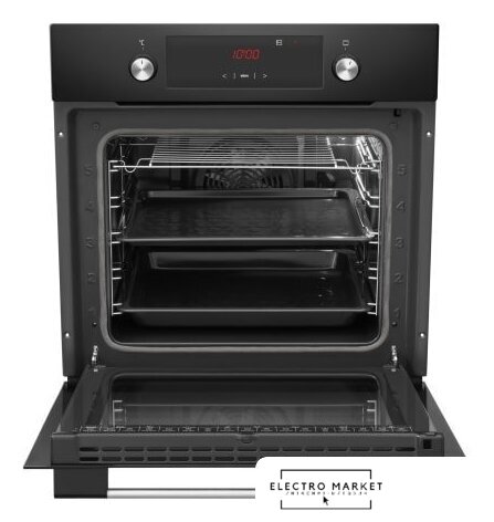 электрический с конвекцией, приготовление на пару, объем 72 л, утапливаемые переключатели, 10 режимов, очистка каталитическая, 2 стекла в дверце, направляющие проволочные + телескопические (1 уровень)