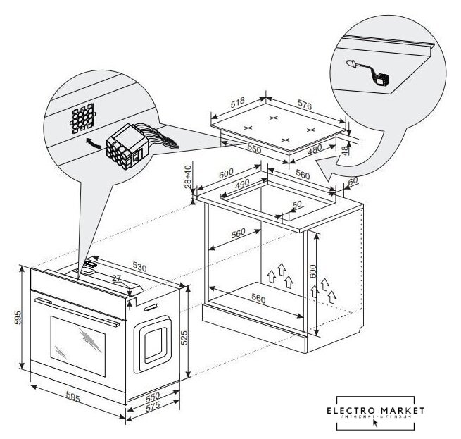 электрический с конвекцией, объем 55 л, 7 режимов, очистка ручная, направляющие проволочные + телескопические (1 уровень)