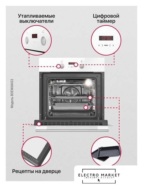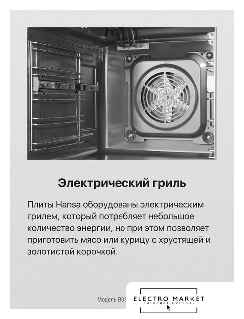 электрический с конвекцией, объем 51 л, 6 режимов, очистка ручная, 2 стекла в дверце, направляющие проволочные
