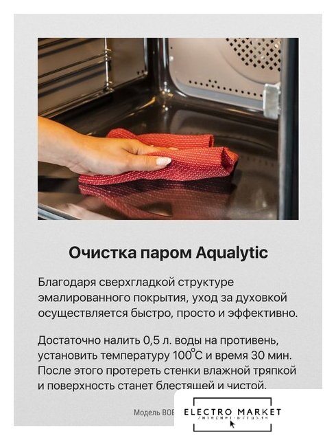 электрический с конвекцией, объем 70 л, утапливаемые переключатели, 9 режимов, очистка паровая, 3 стекла в дверце, направляющие проволочные + телескопические, термощуп