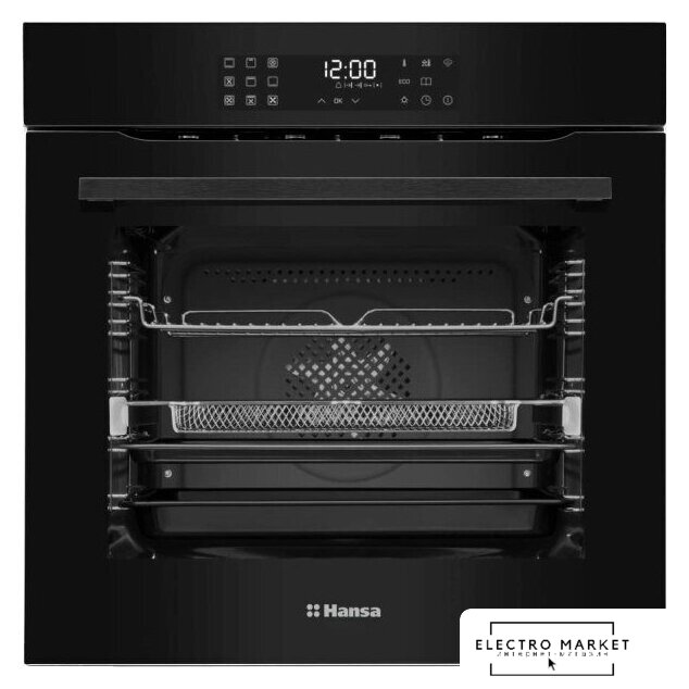 электрический с конвекцией, объем 70 л, утапливаемые переключатели, 9 режимов, очистка каталитическая, 3 стекла в дверце, направляющие проволочные + телескопические (2 уровня)