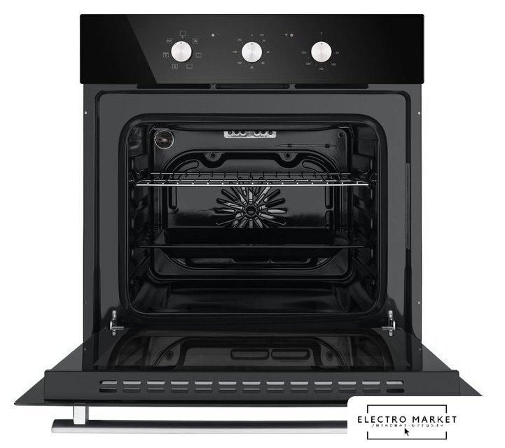электрический с конвекцией, объем 61 л, 6 режимов, очистка паровая, проволочные направляющие, энергопотребление A