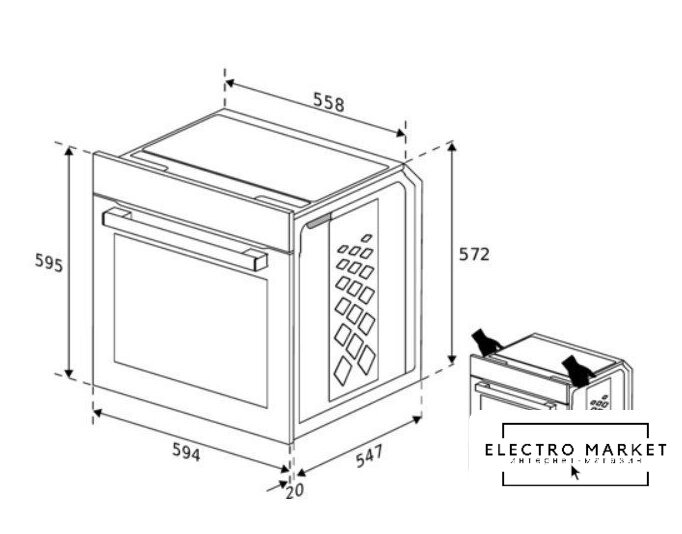 электрический с конвекцией, объем 71 л, 7 режимов, очистка каталитическая, проволочные направляющие, телескопические направляющие, энергопотребление A