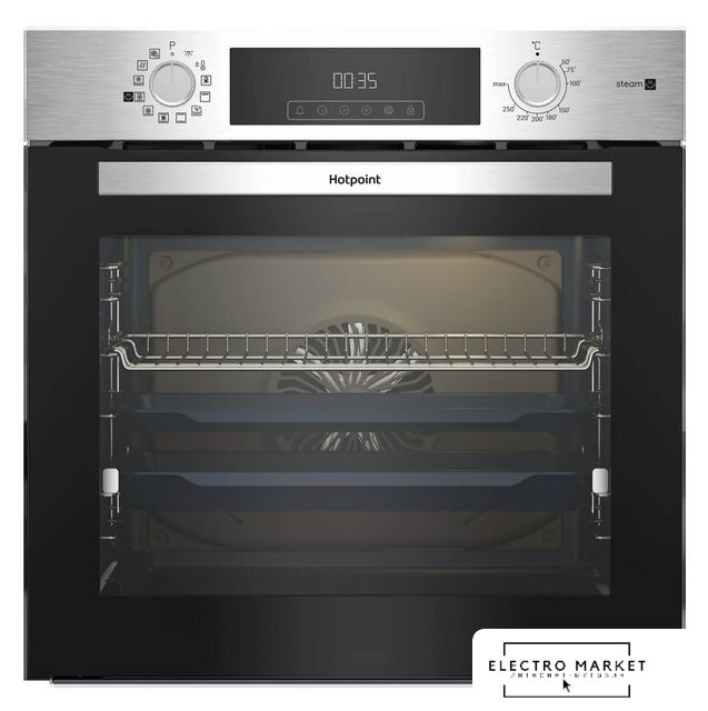электрический с конвекцией, приготовление на пару, объем 77 л, утапливаемые переключатели, 12 режимов, очистка паровая, 2 стекла в дверце, направляющие проволочные + телескопические