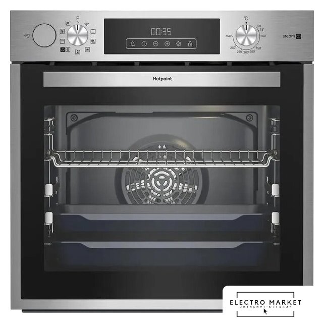электрический с конвекцией, объем 77 л, 9 режимов, очистка паровая, проволочные направляющие, телескопические направляющие, энергопотребление A