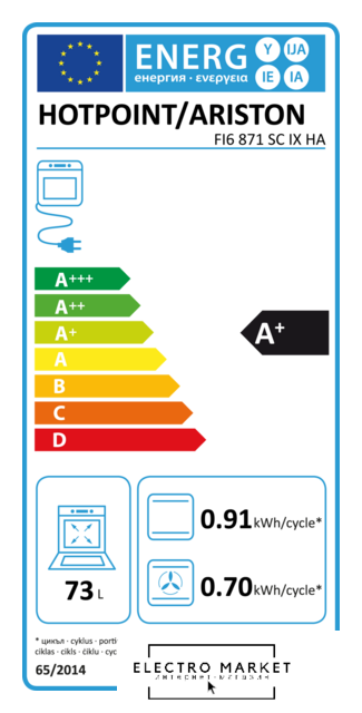 электрический с конвекцией, объем 70 л, 9 режимов, очистка ручная, проволочные направляющие, телескопические направляющие, энергопотребление A+