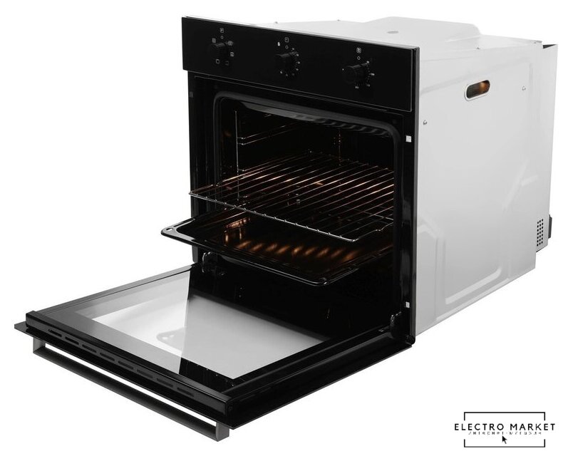 электрический статический, объем 60 л, утапливаемые переключатели, 3 режима, очистка паровая, 3 стекла в дверце