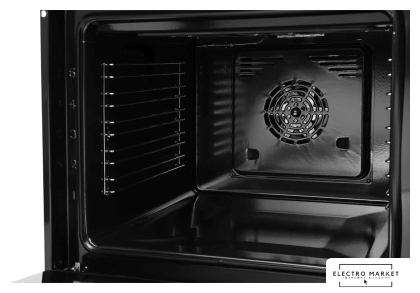 электрический с конвекцией, объем 76 л, 5 режимов, очистка паровая, 2 стекла в дверце, направляющие проволочные