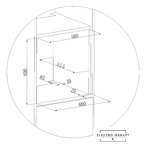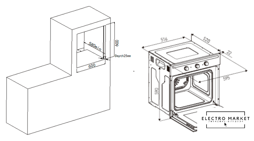 электрический с конвекцией, объем 60 л, утапливаемые переключатели, 8 режимов, очистка ручная, направляющие проволочные