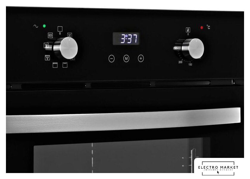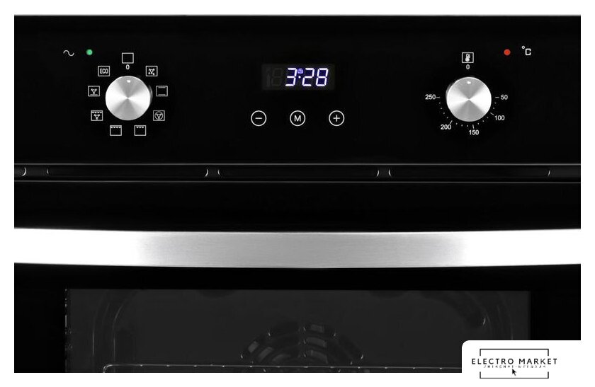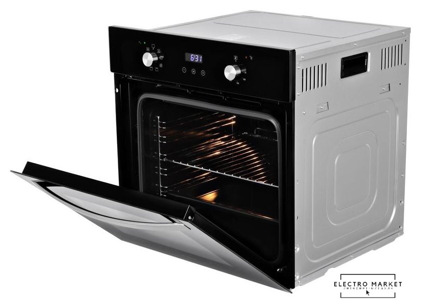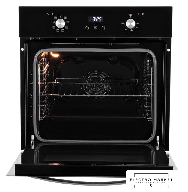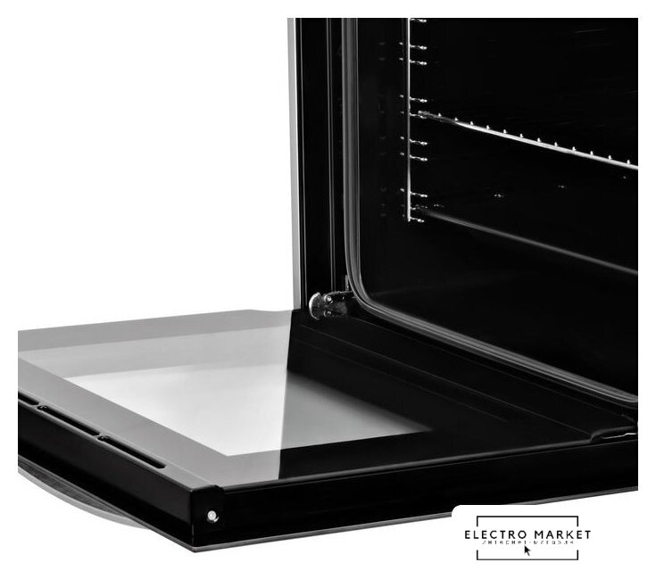 электрический с конвекцией, объем 50 л, утапливаемые переключатели, 8 режимов, очистка ручная, 3 стекла в дверце, направляющие проволочные