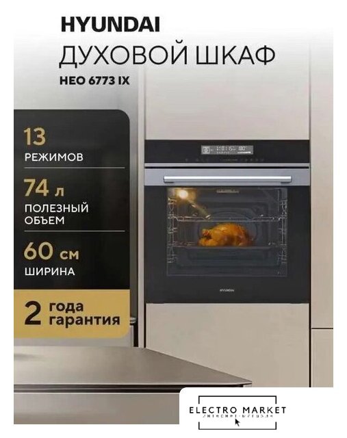 электрический с конвекцией, объем 60 л, утапливаемые переключатели, 8 режимов, очистка ручная, направляющие проволочные
