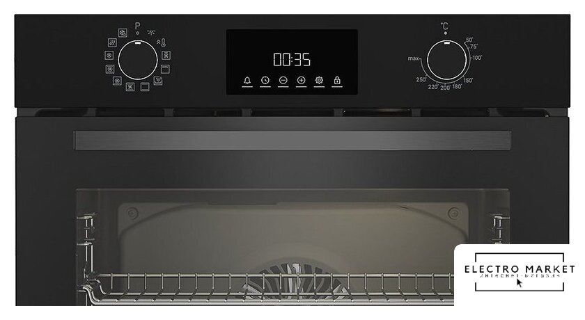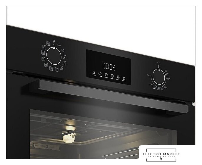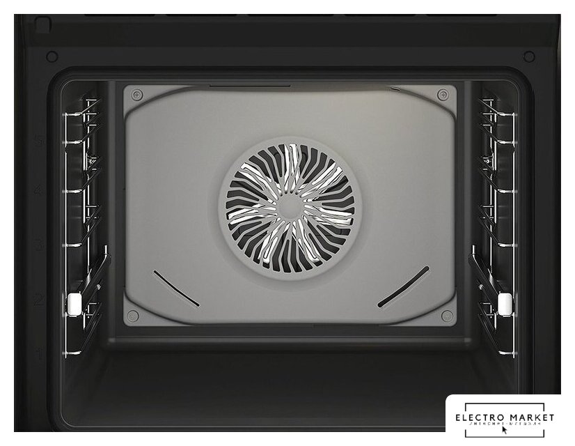 электрический с конвекцией, объем 60 л, утапливаемые переключатели, 6 режимов, очистка паровая, 3 стекла в дверце, направляющие проволочные