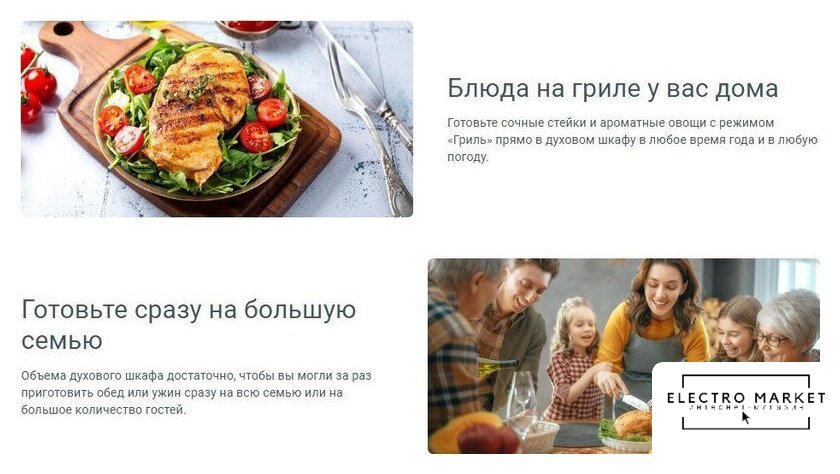 электрический с конвекцией, объем 72 л, 6 режимов, очистка паровая, 2 стекла в дверце, направляющие проволочные