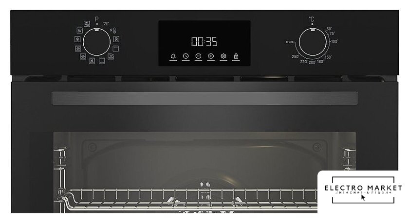 электрический с конвекцией, объем 65 л, утапливаемые переключатели, 8 режимов, очистка ручная, направляющие проволочные