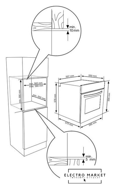 электрический с конвекцией, объем 68 л, утапливаемые переключатели, 6 режимов, очистка каталитическая, 3 стекла в дверце, направляющие проволочные + телескопические (2 уровня)