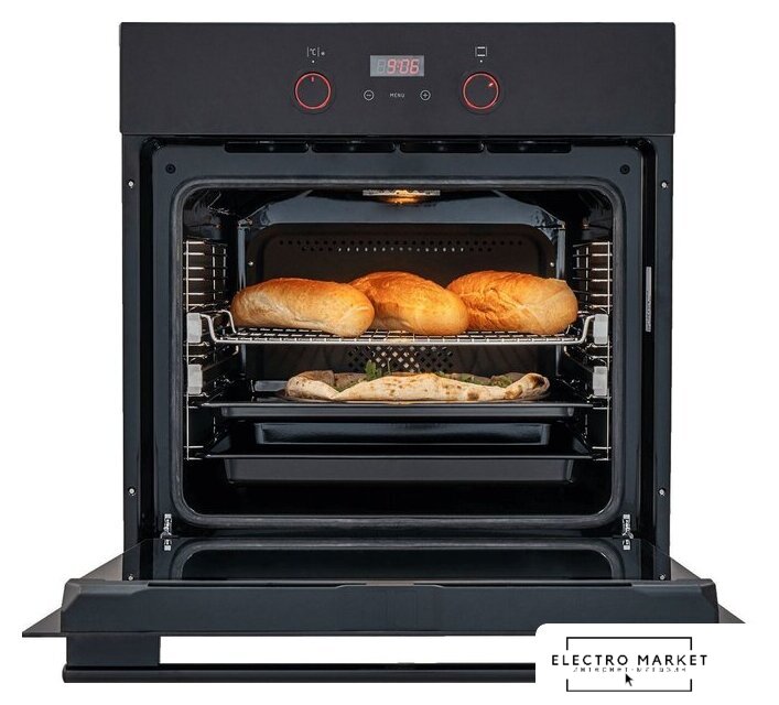 | Режимы работы | нижний нагрев, двухсторонний нагрев, вентиляционный нагрев, нижний нагрев + конвекция, двухсторонний нагрев + конвекция, двухсторонний + вентиляционный нагрев (3D), размораживание, предварительный разогрев духовки |