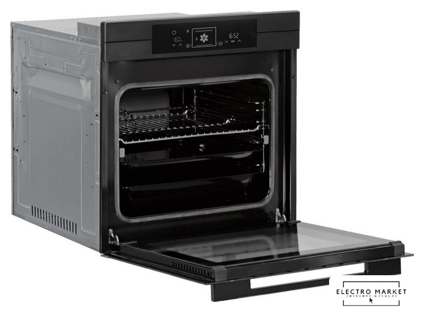 электрический с конвекцией, объем 76 л, 13 режимов, автопрограммы, очистка каталитическая + паровая, 2 стекла в дверце, направляющие проволочные + телескопические (1 уровень)