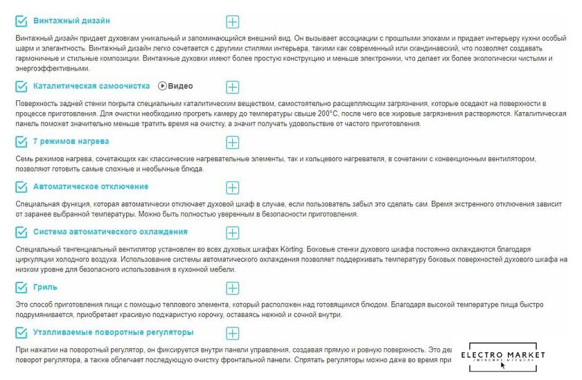 электрический с конвекцией, объем 70 л, утапливаемые переключатели, 9 режимов, очистка каталитическая, 3 стекла в дверце, направляющие проволочные + телескопические (2 уровня)