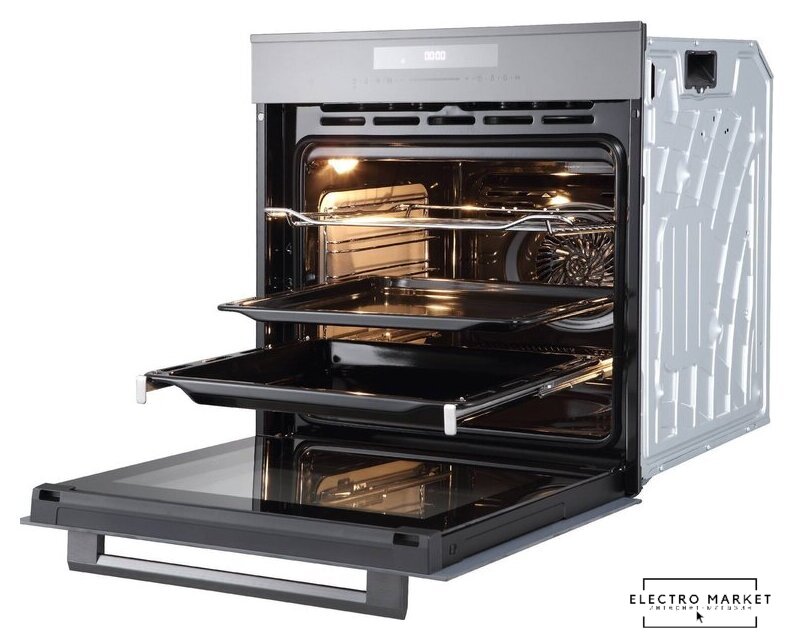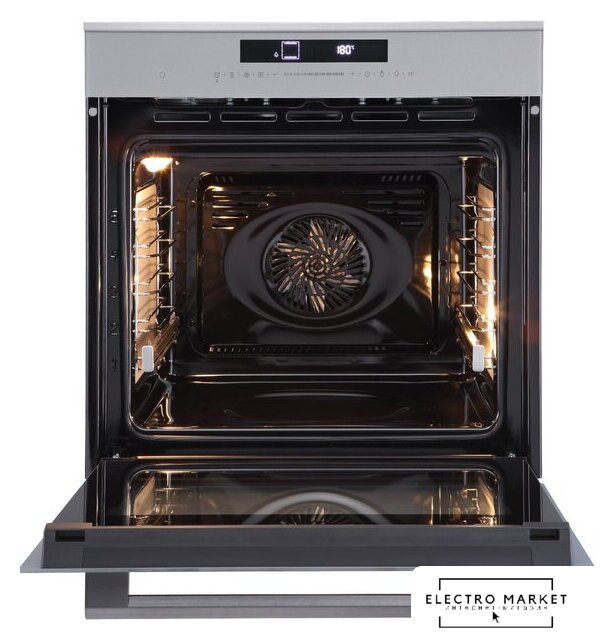 электрический с конвекцией, приготовление на пару, объем 76 л, 9 режимов, автопрограммы, очистка каталитическая + паровая, 2 стекла в дверце, направляющие проволочные + телескопические (1 уровень)