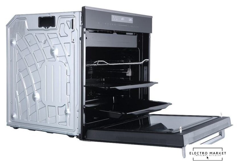 электрический с конвекцией, объем 70 л, утапливаемые переключатели, 8 режимов, очистка каталитическая, 3 стекла в дверце, направляющие проволочные + телескопические (1 уровень)