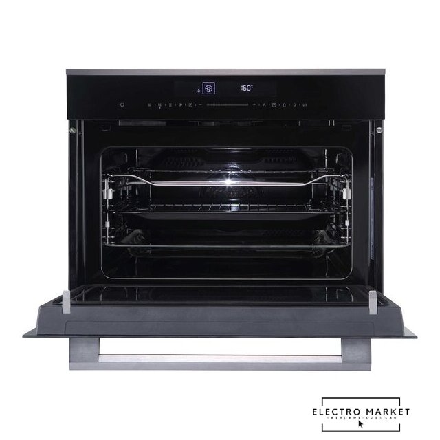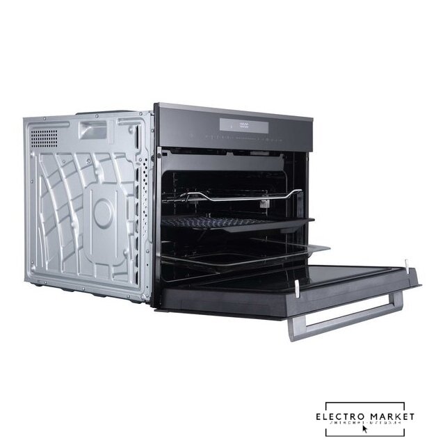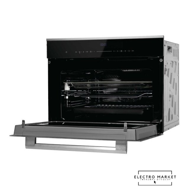 электрический с конвекцией, объем 80 л, 8 режимов, очистка паровая, 2 стекла в дверце, направляющие проволочные + телескопические (1 уровень)