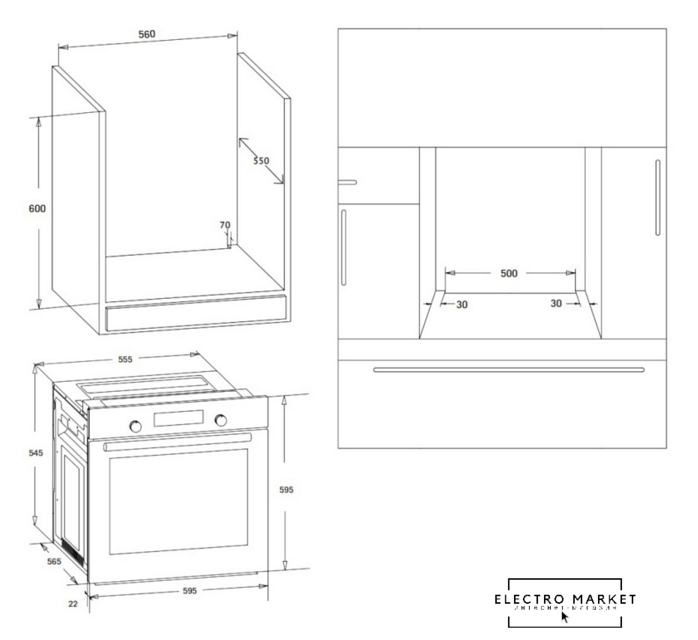 электрический с конвекцией, объем 70 л, утапливаемые переключатели, 9 режимов, очистка паровая, 3 стекла в дверце, направляющие проволочные + телескопические, термощуп