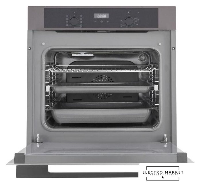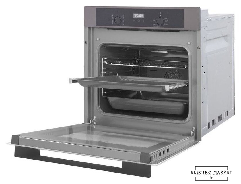 электрический с конвекцией, объем 67 л, утапливаемые переключатели, 6 режимов, очистка ручная, 3 стекла в дверце, направляющие проволочные