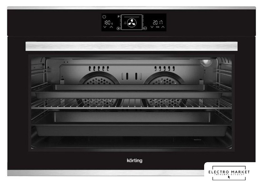 электрический с конвекцией, микроволны, объем 50 л, 20 режимов, 26 автопрограмм, очистка паровая, 3 стекла в дверце, направляющие проволочные