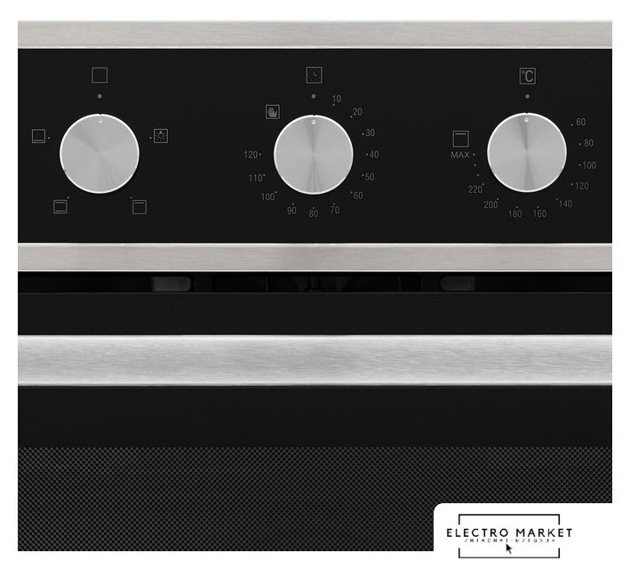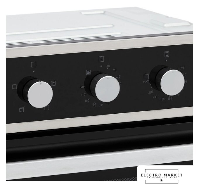 электрический с конвекцией, объем 72 л, утапливаемые переключатели, 6 режимов, очистка паровая, 2 стекла в дверце, направляющие рельефные