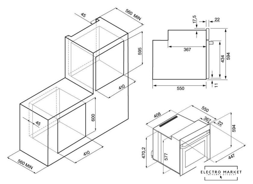 электрический с конвекцией, объем 70 л, утапливаемые переключатели, 8 режимов, очистка ручная, направляющие проволочные