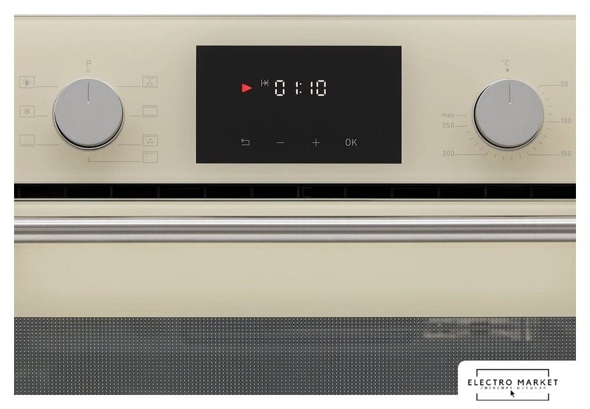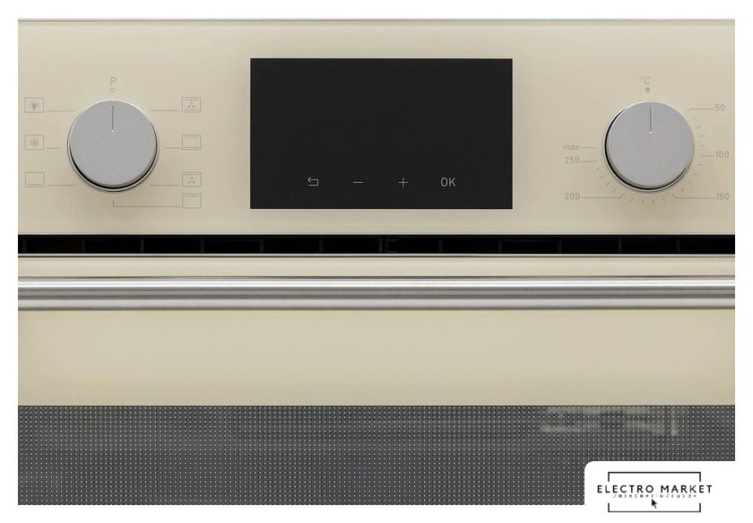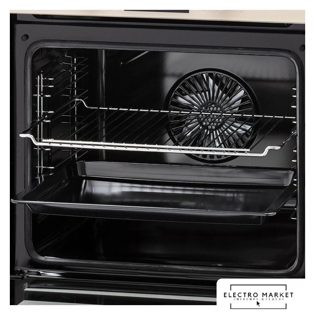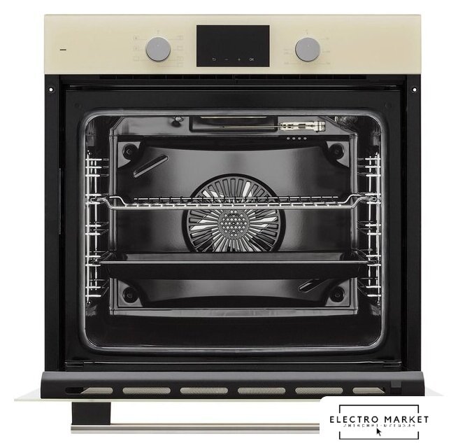 электрический с конвекцией, объем 58 л, утапливаемые переключатели, 7 режимов, очистка паровая, 2 стекла в дверце, направляющие рельефные
