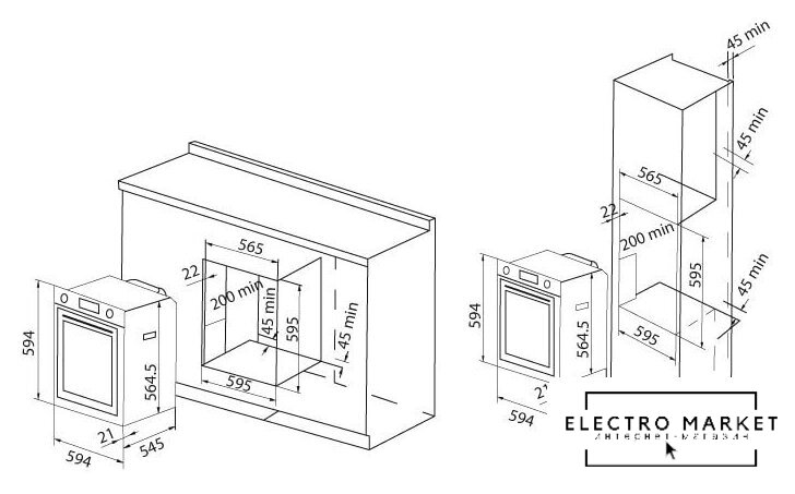 электрический с конвекцией, объем 55 л, 8 режимов, очистка ручная, направляющие проволочные + телескопические (1 уровень)