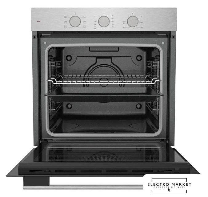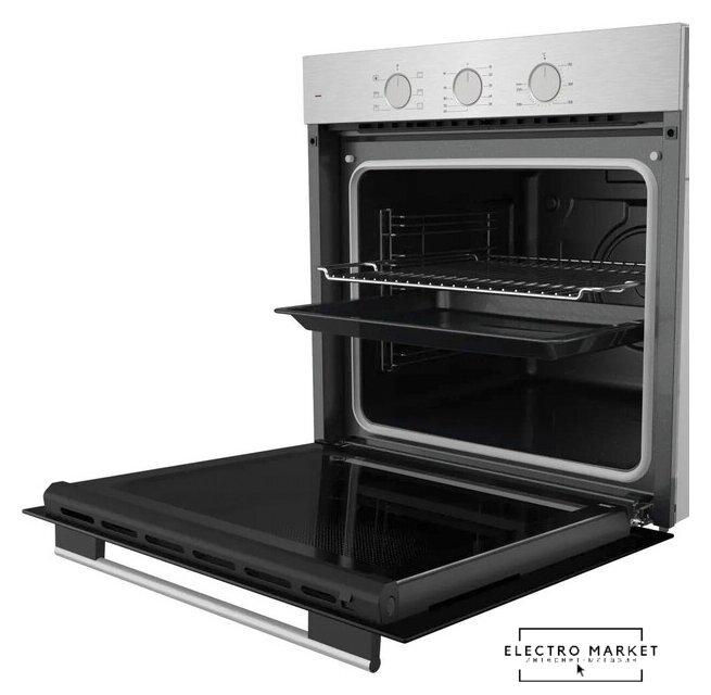 электрический с конвекцией, объем 60 л, 6 режимов, очистка паровая, 3 стекла в дверце, направляющие проволочные + телескопические (1 уровень)