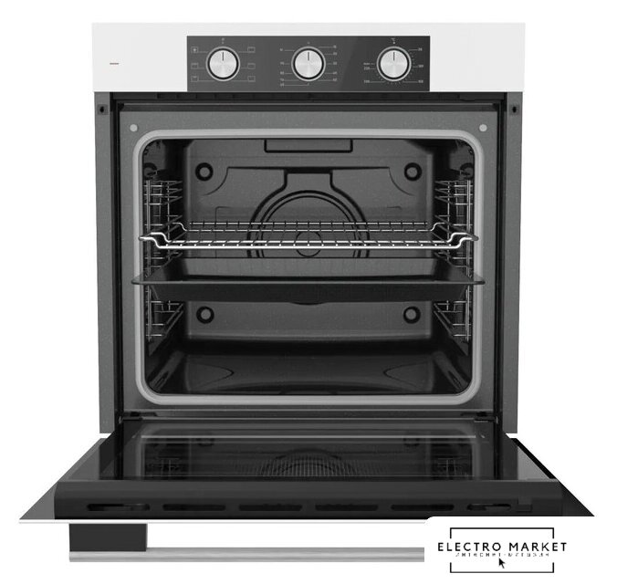 электрический с конвекцией, объем 69 л, 7 режимов, очистка каталитическая + паровая, 3 стекла в дверце, направляющие проволочные + телескопические (1 уровень)