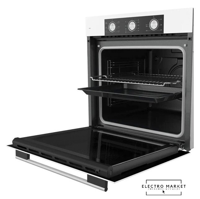 электрический с конвекцией, объем 76 л, 10 режимов, очистка ручная, 3 стекла в дверце, направляющие проволочные + телескопические (2 уровня)
