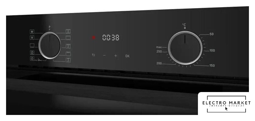 электрический с конвекцией, объем 66 л, 8 режимов, очистка ручная, проволочные направляющие, энергопотребление A