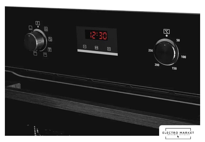 электрический с конвекцией, объем 66 л, 8 режимов, очистка ручная, проволочные направляющие, энергопотребление A
