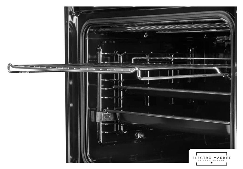 электрический с конвекцией, объем 50 л, 6 режимов, очистка ручная, проволочные направляющие, телескопические направляющие, энергопотребление A