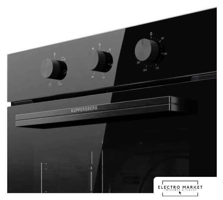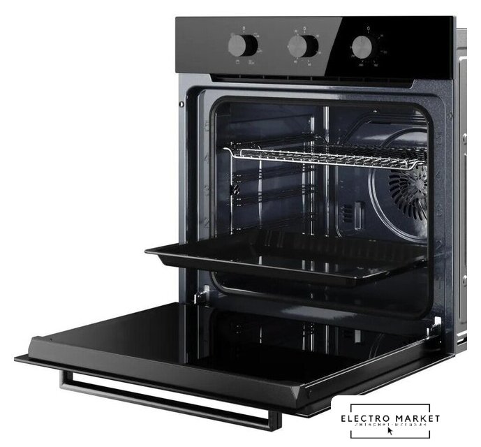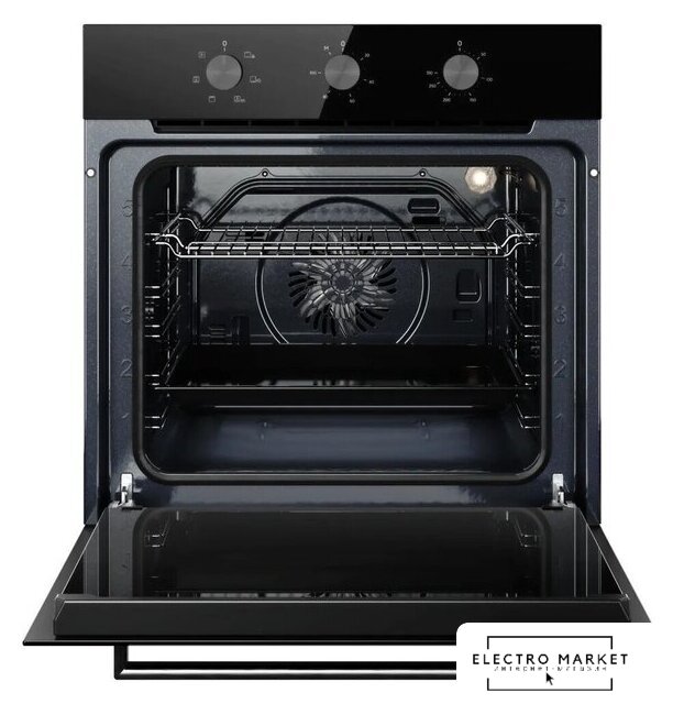 электрический с конвекцией, объем 60 л, утапливаемые переключатели, 10 режимов, очистка ручная, 3 стекла в дверце, направляющие проволочные
