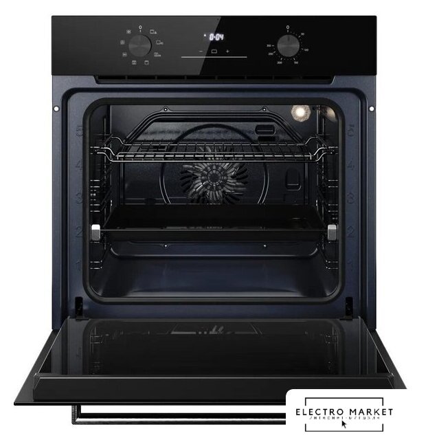 электрический с конвекцией, объем 60 л, утапливаемые переключатели, 6 режимов, очистка ручная, 3 стекла в дверце, направляющие рельефные