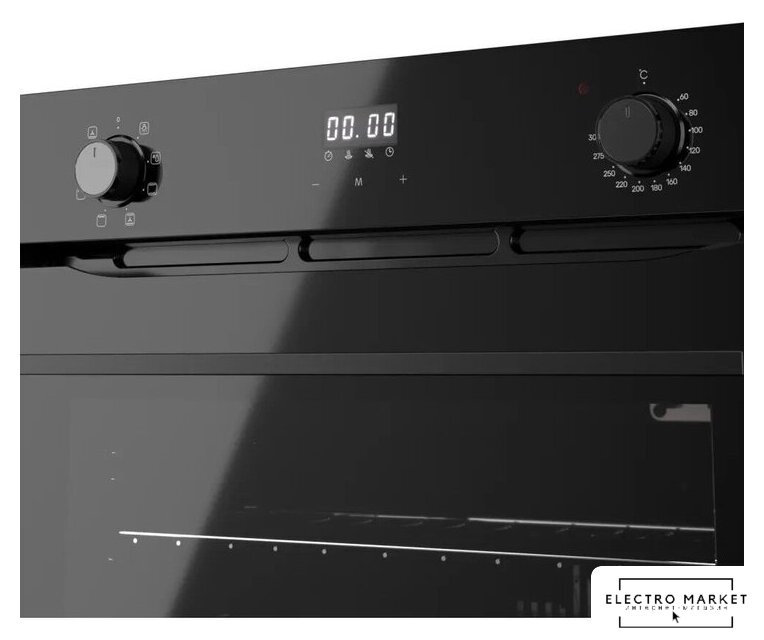 электрический с конвекцией, объем 60 л, 6 режимов, очистка паровая, 3 стекла в дверце, направляющие проволочные + телескопические (1 уровень)