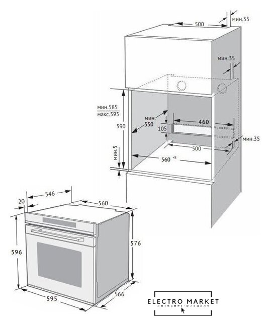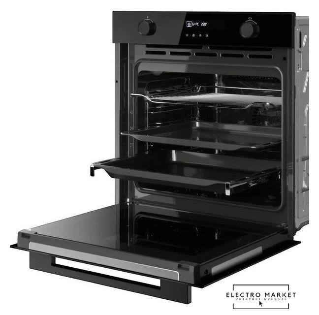 электрический с конвекцией, объем 51 л, утапливаемые переключатели, 7 режимов, очистка ручная, направляющие проволочные