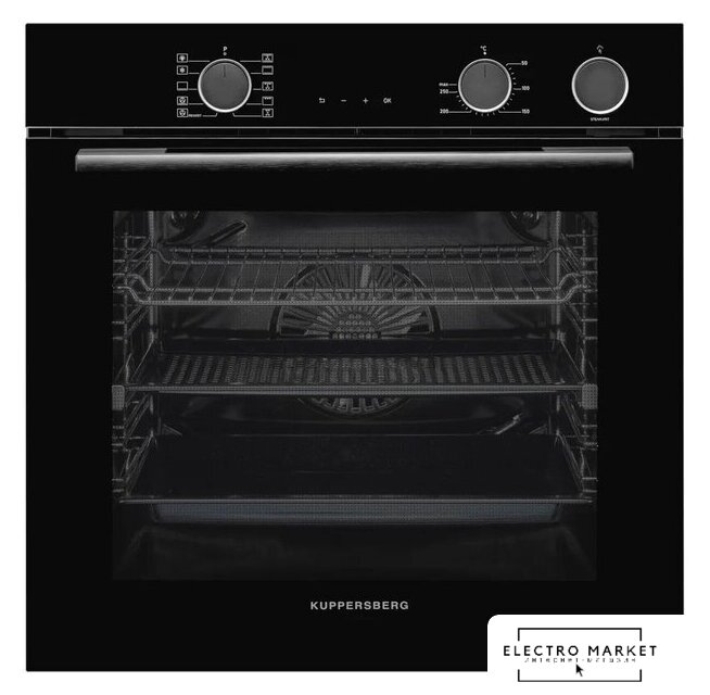электрический с конвекцией, объем 64 л, 6 режимов, очистка ручная, проволочные направляющие, телескопические направляющие, энергопотребление A