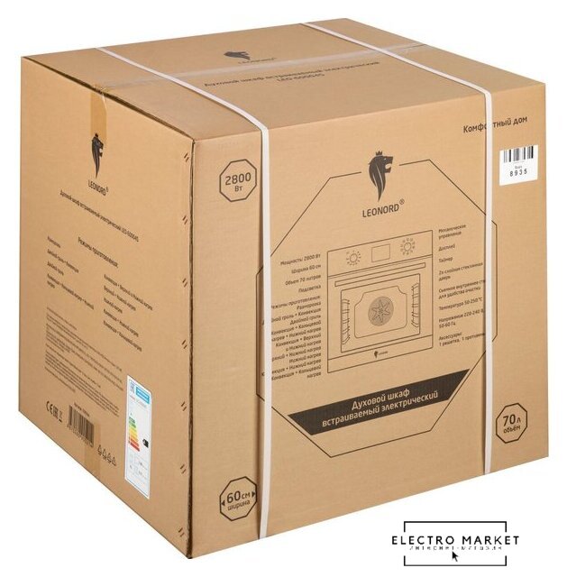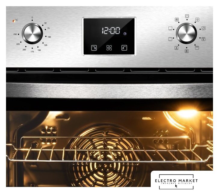 электрический с конвекцией, объем 60 л, 6 режимов, очистка ручная, проволочные направляющие, энергопотребление A
