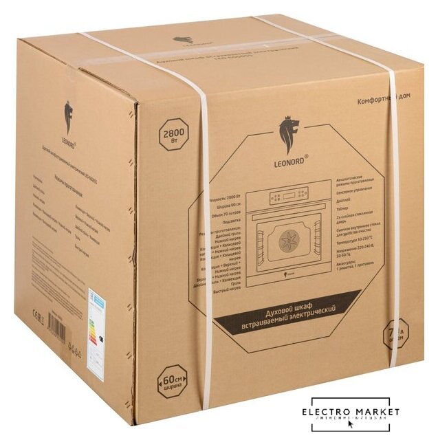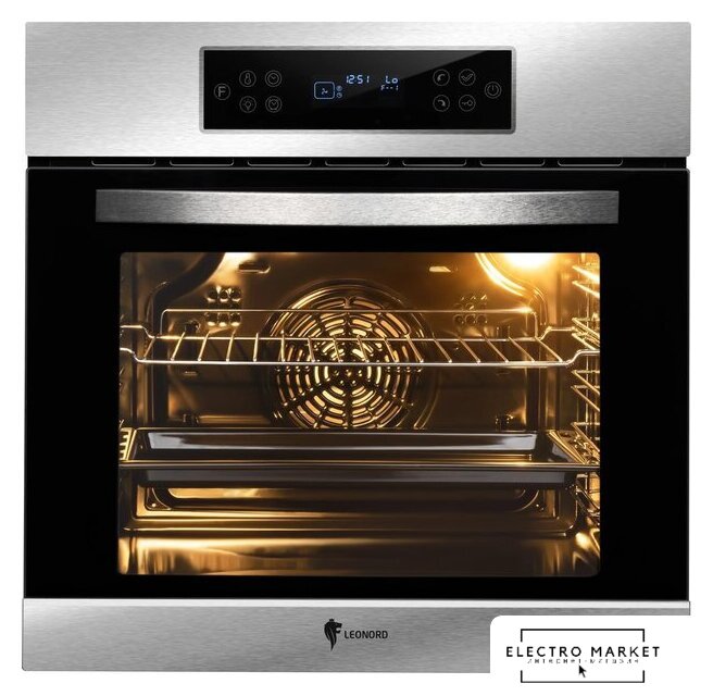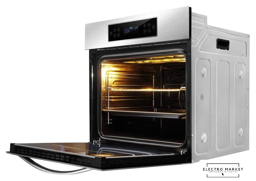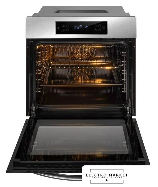 электрический с конвекцией, объем 60 л, 6 режимов, очистка паровая, 3 стекла в дверце, направляющие проволочные + телескопические (1 уровень)