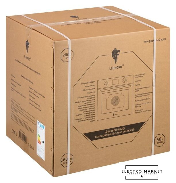 электрический с конвекцией, объем 60 л, 10 режимов, очистка ручная, направляющие рельефные