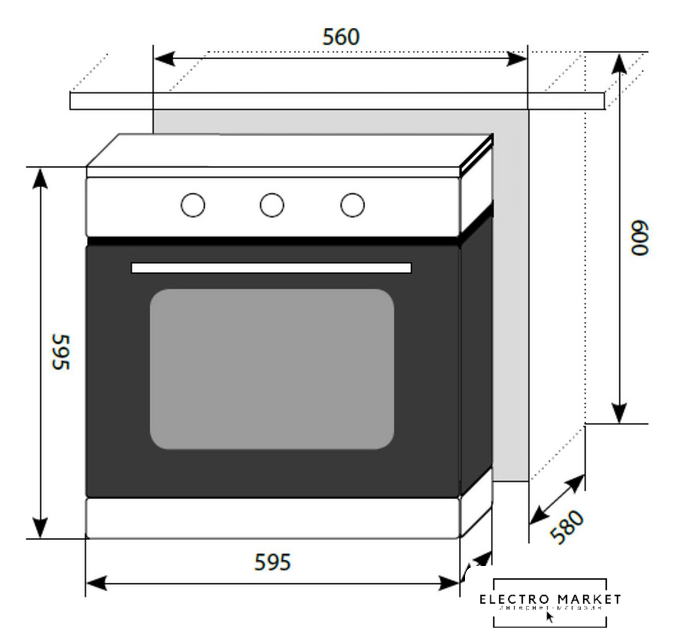 электрический с конвекцией, объем 65 л, 7 режимов, 2 стекла в дверце, направляющие проволочные
