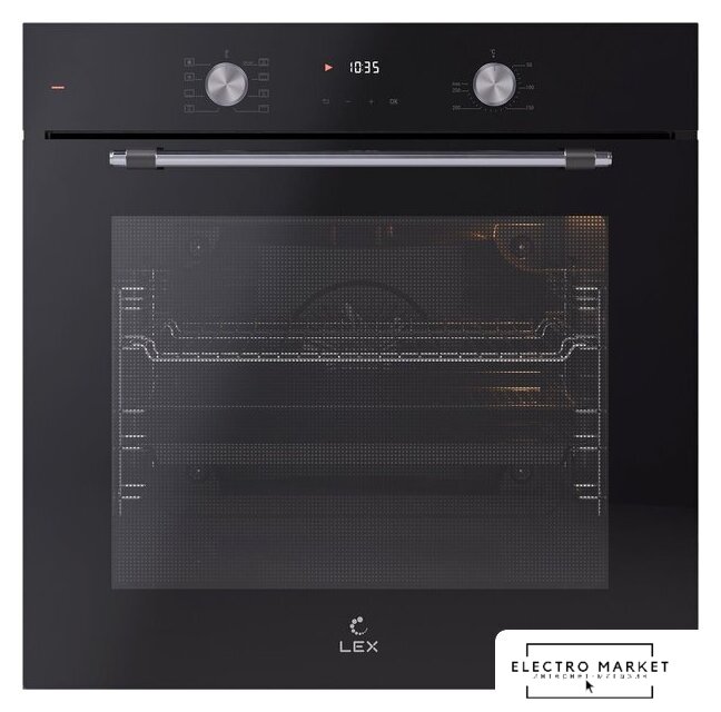 электрический с конвекцией, объем 58 л, 6 режимов, очистка ручная, 3 стекла в дверце, направляющие проволочные